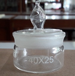 Desikator atau Eksikator adalah wadah tertutup terbuat dari kaca yang di dalamnya berisi silika gel.Fungsi dari desikator adalah untuk menyimpan bahan atau wadah sebelum dilakukan penimbangan. Selain itu juga untuk menyimpan bahan agar tetap dalam kondisi kering